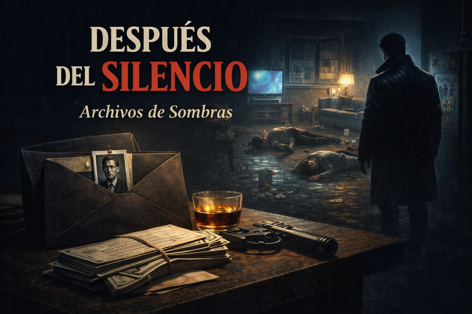 La sala estaba al fondo. El televisor encendido mostraba un programa tonto: Un concurso, gente riéndose por dinero. En el sofá había un hombre, era el de la foto. Tenía la misma sonrisa pequeña, ahora cansada. A su lado, una mujer doblaba ropa. En el suelo, un niño —no más de diez— armaba algo con piezas de plástico y en el marco de la puerta, una niña más pequeña, con un vaso de leche, observaba el televisor como si fuera hipnotizada.